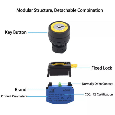 YIJIA LA36M 22 mm Schlüsselschalter, verriegelnd, 2 Positionen, 660 V, 10 A