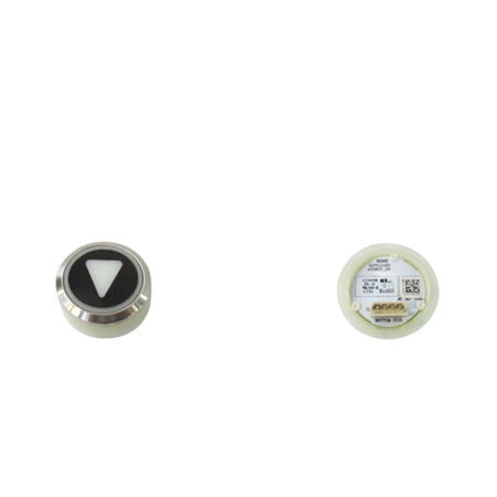 Detta är en rund utanpåliggande hisssymbol för nedåtgående anropsknapp, avsedd för KONEs signaleringssystem.